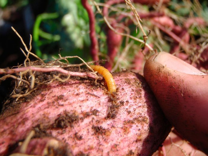 Батат отличается достаточно высокой устойчивостью к различным вредным насекомым и заболеваниям, которые привычны для средних широт. Однако ему могут навредить личинки хрущей, при этом замечено, что они, как правило, повреждают самые большие и красивые клубни. Бороться с хрущами и их личинками нужно обязательно, при этом можно воспользоваться различными способами.
