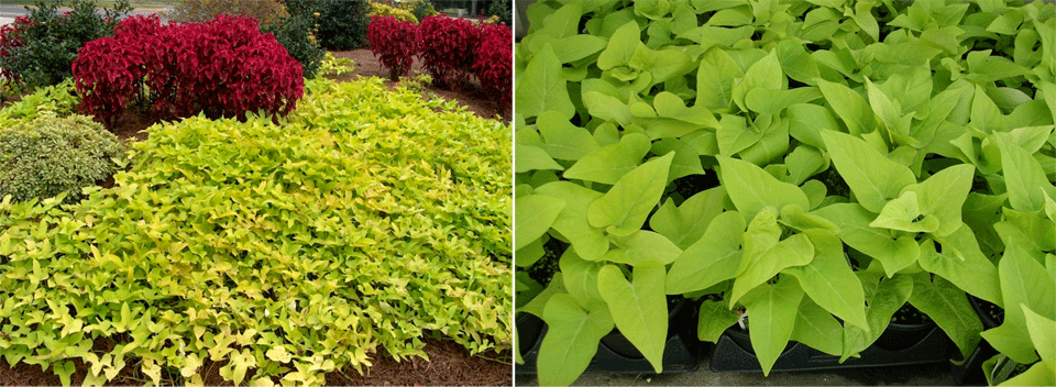 В последнее время на ипомею батат обратили внимание как на неприхотливое декоративное растение, она стала очень популярной в городском озеленении. Это растение вырастает до 30 см высотой, плети способно давать до 1-2 м