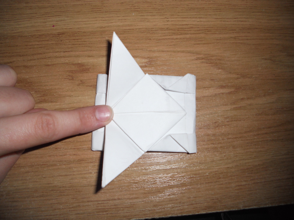 Уголки одного из треугольников загните к вершине и переверните заготовку