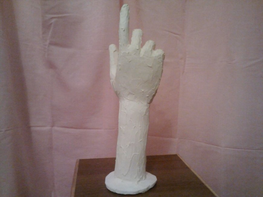 Для изготовления основания для руки в тарелку или другую емкость заливаем гипс и в полученный состав устанавливаем гипсовую руку. После полного затвердевания изделие ошкуривается наждачной бумагой и окрашивается или декорируется по желанию изготовителя.
