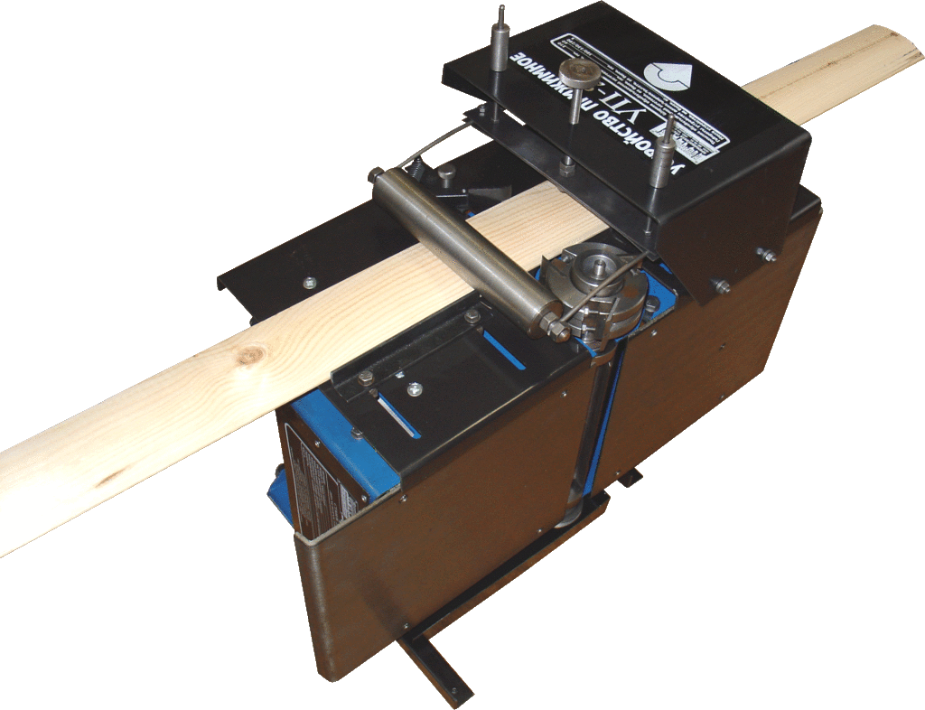 Мы видим пример деревообрабатывающего станка для изготовления вагонки.