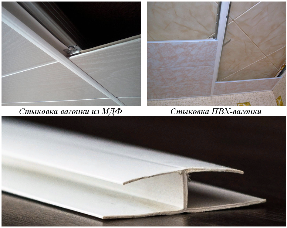 Н-образным ПВХ профилем. Чаще всего стыковка по длине вагонки из пластика и МДФ выполняется при помощи Н-образных ПВХ профилей, как на фото снизу. В этом варианте планки просто заводятся с обеих сторон в профиль. Минус в том, что такой профиль видно, а в случае с МДФ он еще и отличается по фактуре.