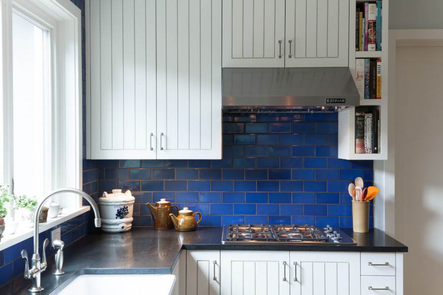 Выбирая плитку для фартука, ориентируйтесь на стиль кухни и фактуры, преобладающие в интерьере