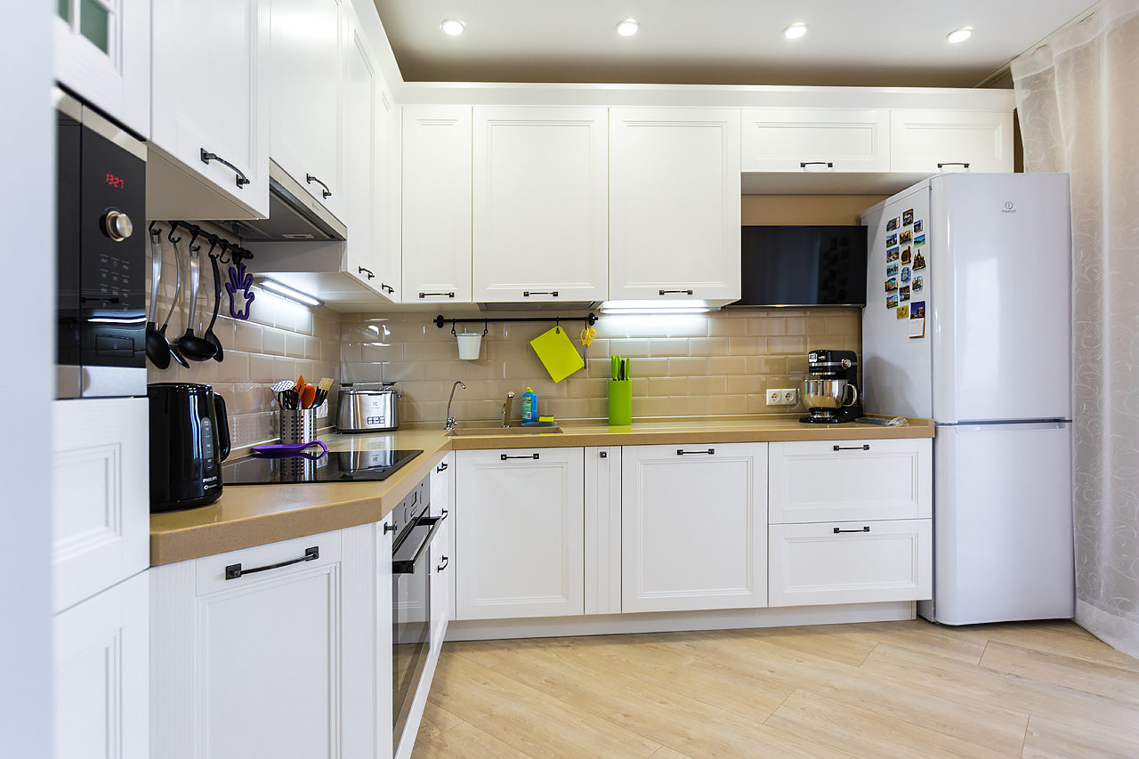 Не стоит бояться приобретать на кухню плитку белого цвета, потому что уход за ней не будет сложнее ухода за плиткой любого другого цвета. Ведь этот материал для отделки относится к ряду самых практичных, и на глазурь, покрывающую плитку «кабанчик», не осядет ни пыль, ни грязь. А если на ней и появится какое-либо загрязнение, то оно легко удалится просто влажной салфеткой.