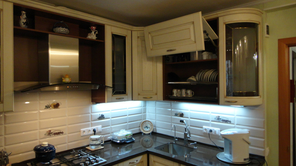 - Фартук можно укладывать как до установки гарнитура, так и после, но в первом случае вам будет легче сориентироваться, где начать и где закончить кладку;