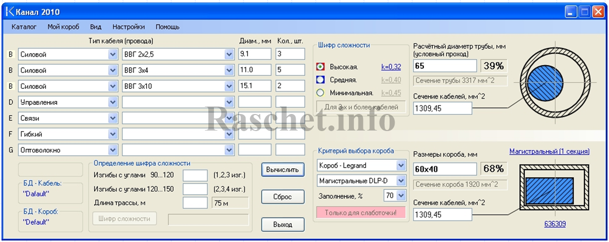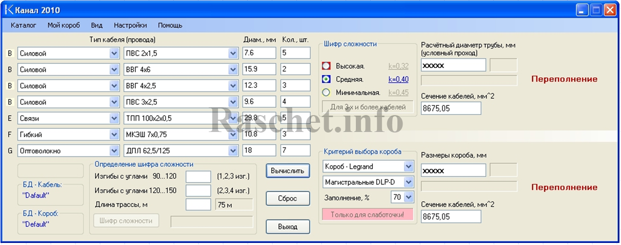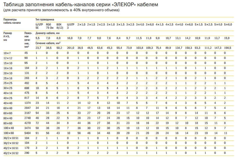 Чтобы не подсчитывать самостоятельно сколько ниток кабеля вы можете пустить по тому или иному каналу, воспользуйтесь таблицей ниже: