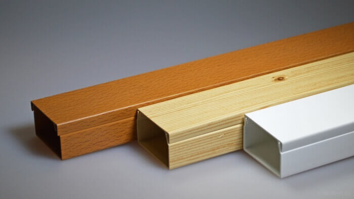 По внешнему виду кабельные каналы различаются по цвету, могут быть выполнены с текстурой дерева и т.д. Фактически, среди всего этого разнообразия для дома и офиса чаще всего выбирают простые гладкие кабель-каналы из ПВХ белого цвета для наружного монтажа проводки.