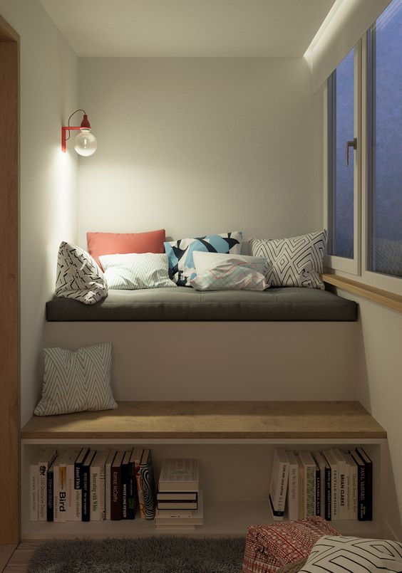 Необходимо сделать акцент на элементах декора: дополнительной атрибутики не должно быть много, поскольку пространство микроскопическое, а любое декоративное украшение визуально будет уменьшать площадь, и создавать ощущение беспорядка.