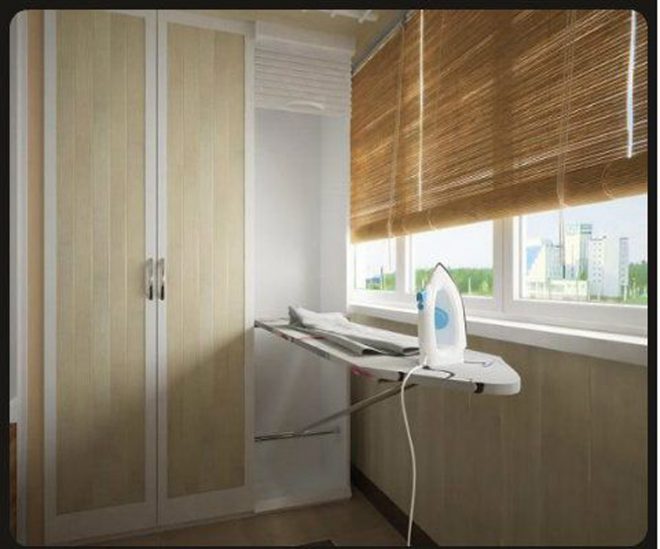 Отличная идея для шкафа с постирочными принадлежностями – откидная гладильная доска: она не занимает места, но позволяет гладить при хорошем естественном освещении. Не пренебрегайте пространством под окном, если оно есть.Там можно сделать неглубокие шкафчики для заготовок и прочего. А в случае если хочется и место для отдыха, и место для хранения одновременно, всегда можно организовать выдвижные ящики под сиденьями.