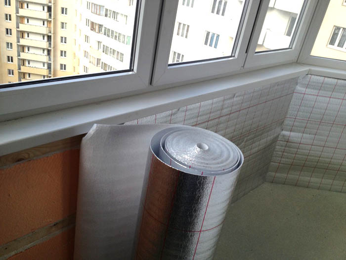 Стены утепляют различными материалами. Один из практичных и бюджетных вариантов утепления лоджии – пенофол. Он обладает теплоизоляционными свойствами, которые по своему качеству ничуть не уступают пенопласту.
