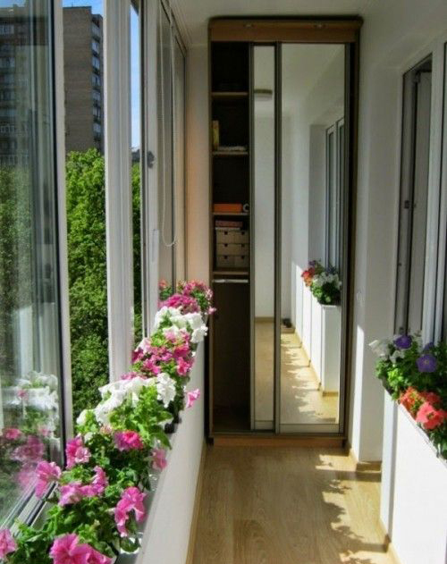 Может быть, вы могли подумать, что мы против хранения на балконе или лоджии, но это не так. Мы не против, а очень за.Особенно за умное хранение. Выбирайте только встроенные шкафы до потолка – в них можно вместить все, что душе угодно. Не забывайте про зеркала: в нашем случае зеркальные двери помогут расширить пространство.