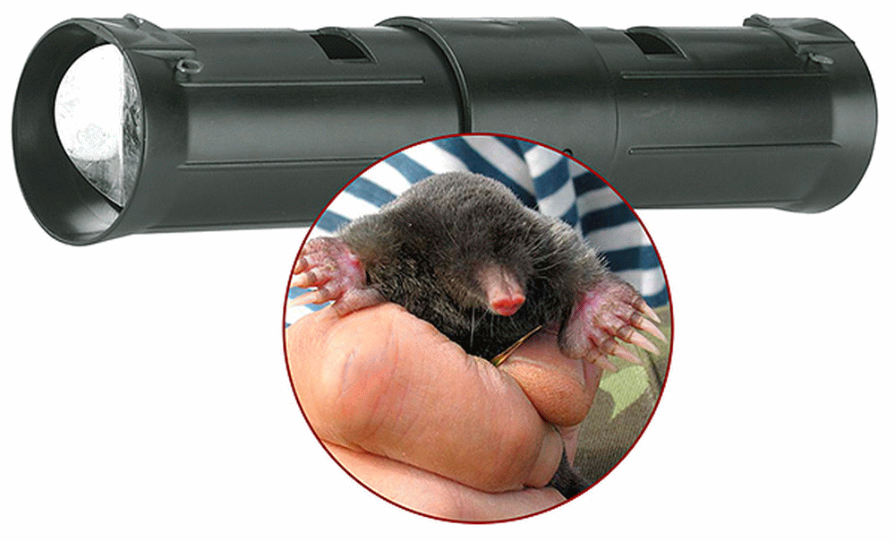 Наибольшей гуманностью характеризуется кротоловка в форме трубы, которая широко применяется практически в любых садах, цветниках и на огородах. Она представляет собой полую конструкцию, имеющую подвижные дверцы с каждой стороны, которая работает в автоматическом режиме. С ее помощью можно поймать зверька, совершенно не покалечив. Это позволяет выносить пойманных животных за пределы участка и отпускать на волю.