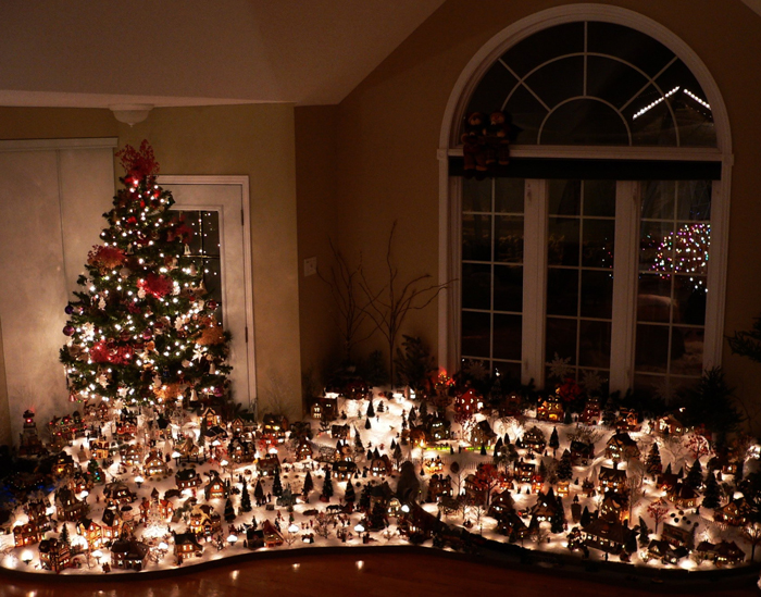 Это один из самых интересных примеров декора. Согласитесь, мини городки под новогодними елочками смотрятся действительно волшебно. Домики довольно просто можно сделать своими руками из картона. Рукодельницы творят действительно очень красивые декоративные домики, как допустим в видео ниже. Вы только посмотрите, как проработаны детали. Волшебство, да и только!