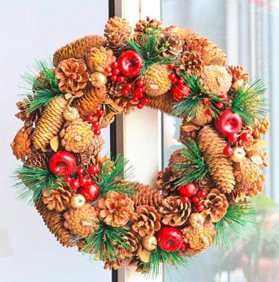 При изготовлении украшений придерживаются единого стиля и заранее продумывают основное цветовое исполнение. Что сделать проще всего? Вещи из шишек. Собранные в лесу еловые и сосновые шишки моют и сушат на солнце. Потом отбеливают в хлорном отбеливателе или белизне 24 часа.