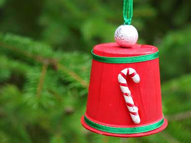 Из плотного картона от коробок можно вырезать разные детали, например, мелкие колокольчики, звездочки и другие. Акриловой краской их красят в белый или другие цвета и присыпают блестками. Получается очень красивые украшения, которыми декорирую елку или собирают в гирлянду. Такими цепочками оформляют окна, мебель, полки.