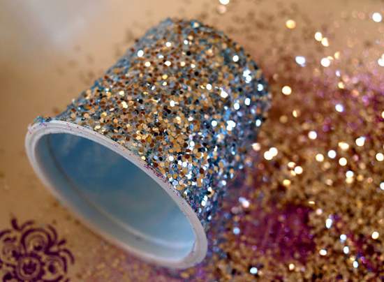 3. Намажьте стаканчик клеем и обмакните в блестки.