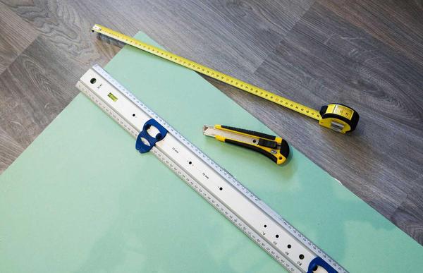 Гипсокартон режут простым строительным ножом. Лист кладут на стол или другую ровную поверхность выше пола. По линейке или с помощью малярной нити делают разметку. Лезвие ножа выдвигают на расстояние, не превышающее толщину ГКЛ, и несколько раз проводят по намеченной линии.