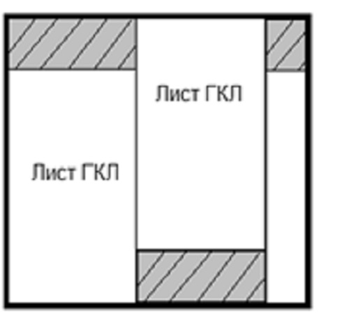 Гипсокартонный лист меньше чем высота стены. Чертится линия по размеру ГКЛ и отмеряется оставшееся расстояние. Этот размер стоит записать на листе, он понадобится в дальнейшем. Гипсокартон клеится к стене таким образом: