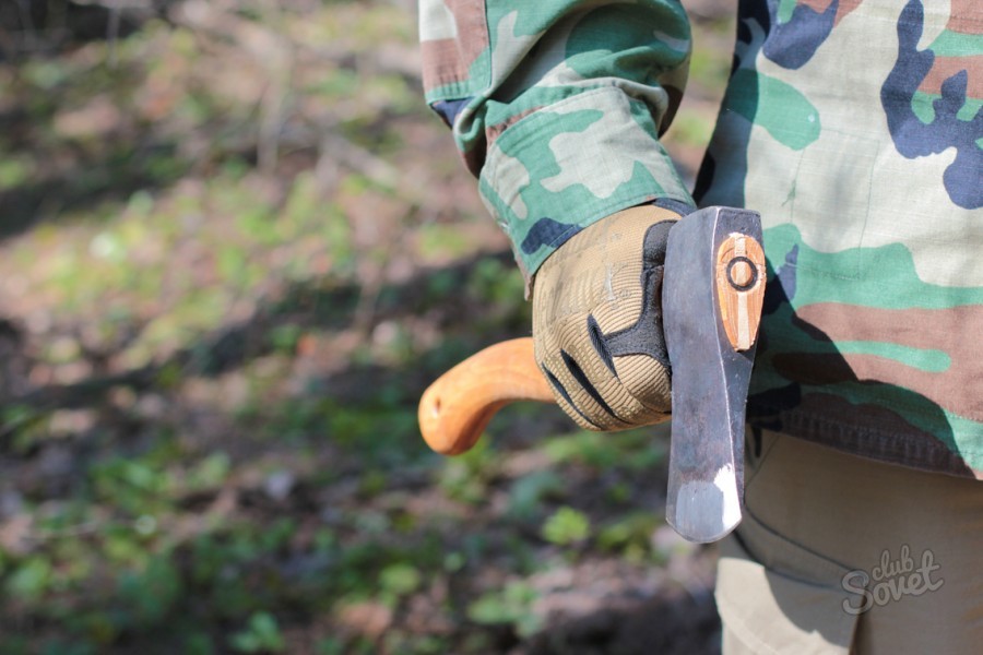 Насадить топор на рукоятку — он должен сесть туго, но без чрезмерного давления на него.