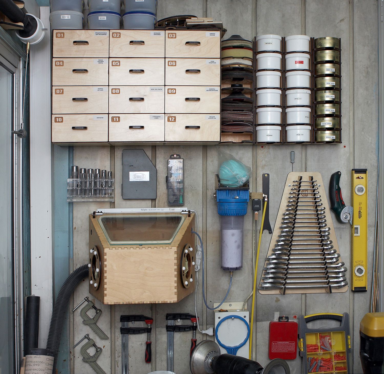 Гараж – тоже не вариант. Придется каждый раз выгонять машину, чтобы не повредить ее во время работ. Зимой из-за этого в гаражной мастерской будет трудновато и весьма энергозатратно поддерживать комфортную для работы температуру. Кроме того, придется пожертвовать частью пространства под автомобильные запчасти, инструмент.