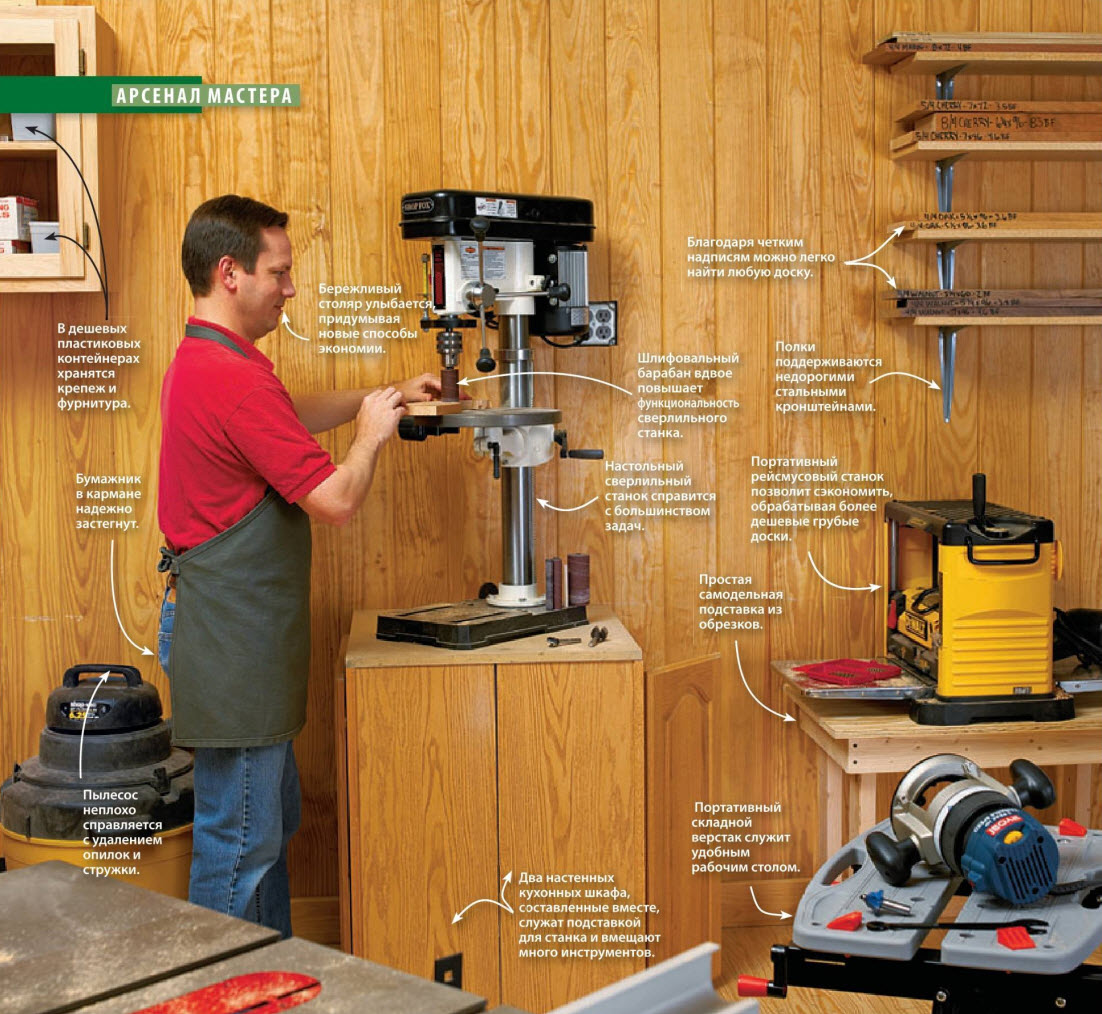 Имея все эти станки, инструменты и оборудование, вы будете готовы почти к любой работе. Затем, по мере необходимости, если позволит бюджет, дополните свой арсенал специализированными инструментами. Прочтите раздел , чтобы увидеть список того, что может потребоваться вам в дальнейшем.