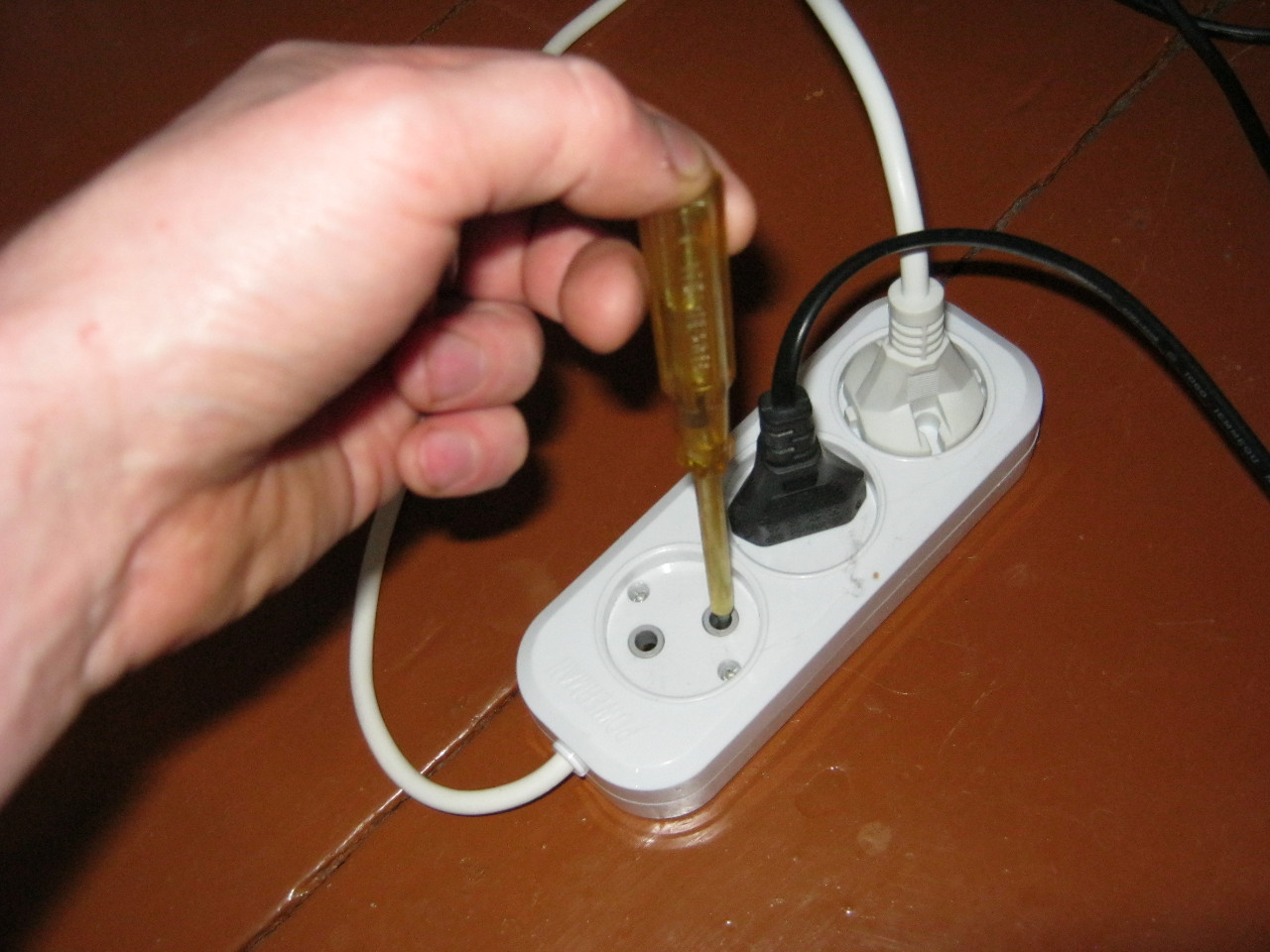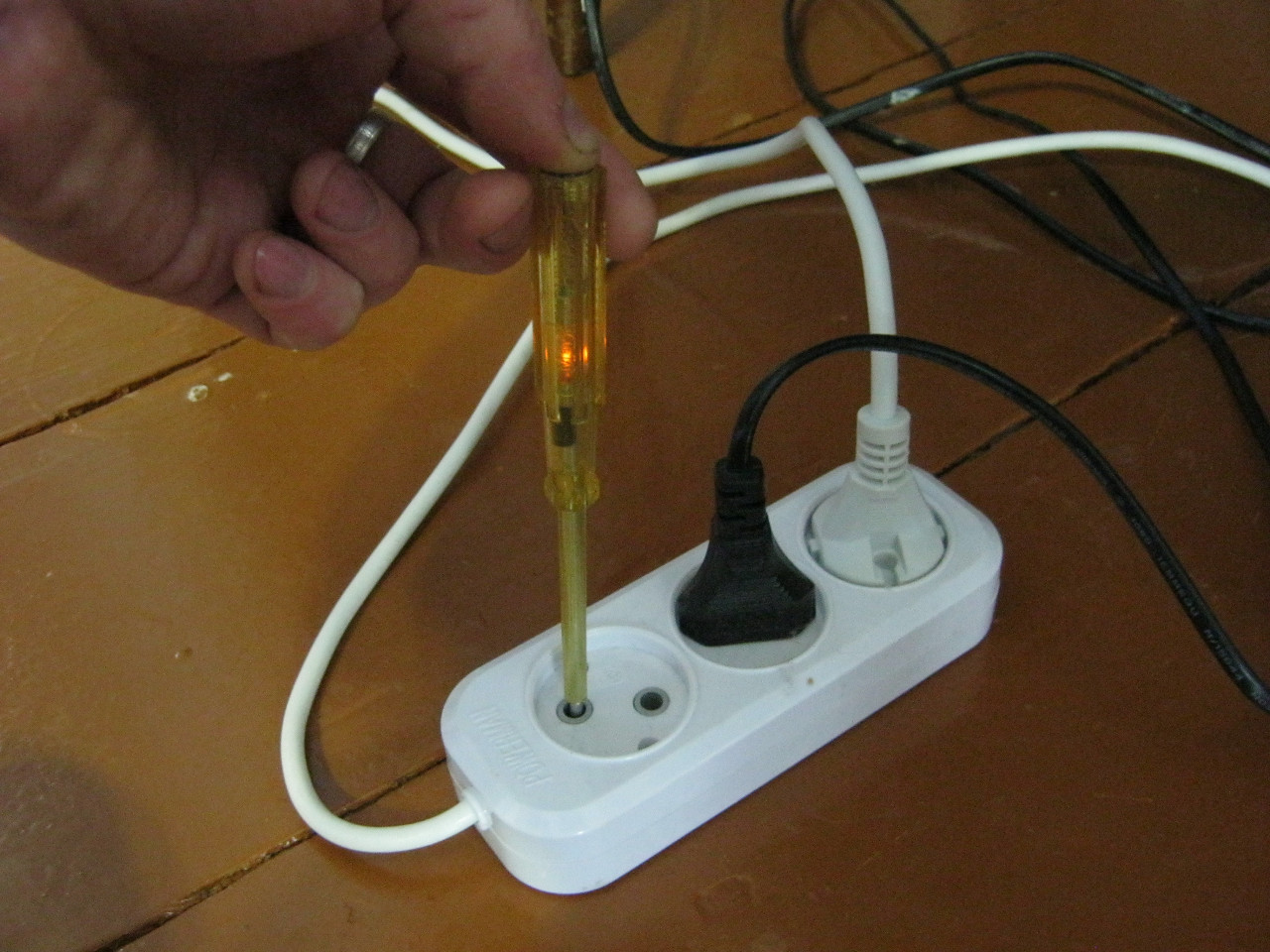 - Если результаты визуальной проверки показали, что цвета изоляции полностью соответствуют правилам, то остается всего лишь проверить фазный проводник, используя для этого индикаторную отвертку.