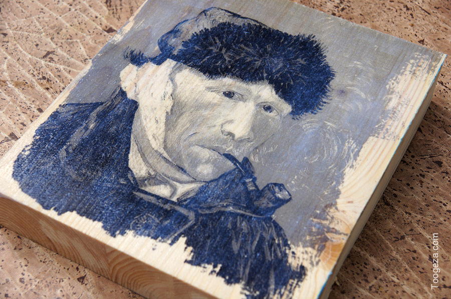 - Чтобы получить идеальный рисунок, нужно отшлифовать или обработать наждачной бумагой деревянную доску, чтобы ее волокна не искажали качество изображения.