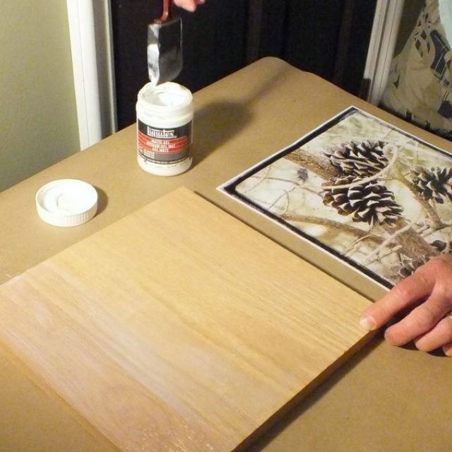 Вне зависимости от выбранного материала, процесс примерно одинаков. Однако в случае с гелем нанесение происходит непосредственно на доску, ну клей наносится на фотографию. Сама фотография может являться простой распечаткой на обычной бумаге