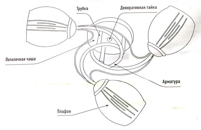 - В завершении вкручивают лампы, крепят плафоны и разные декоративные элементы и затем проверяют работоспособность люстры.