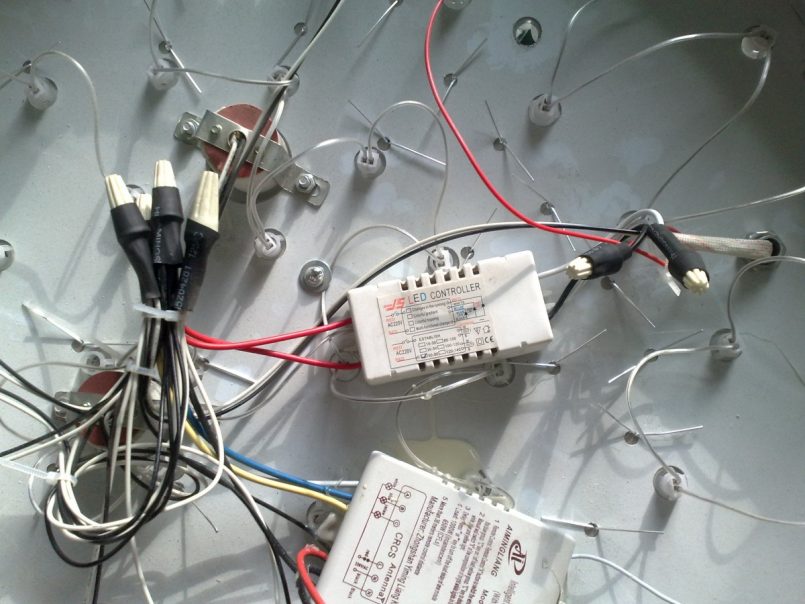 В результате у вас в конструкции люстры будет три провода: фаза, ноль, заземление.