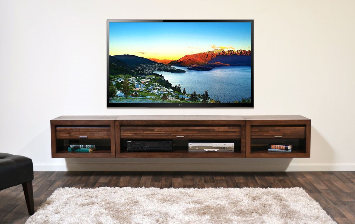 Не забывайте о проводах. Для того, чтобы телевизор смотрелся эстетично, без свисающего снизу электропровода, и выглядел «парящим» в воздухе, озаботьтесь прокладкой кабель-канала.
