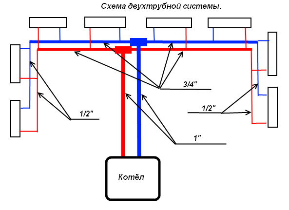 При этом важно учитывать – все радиаторы в двухтрубной системе подключаются только параллельно