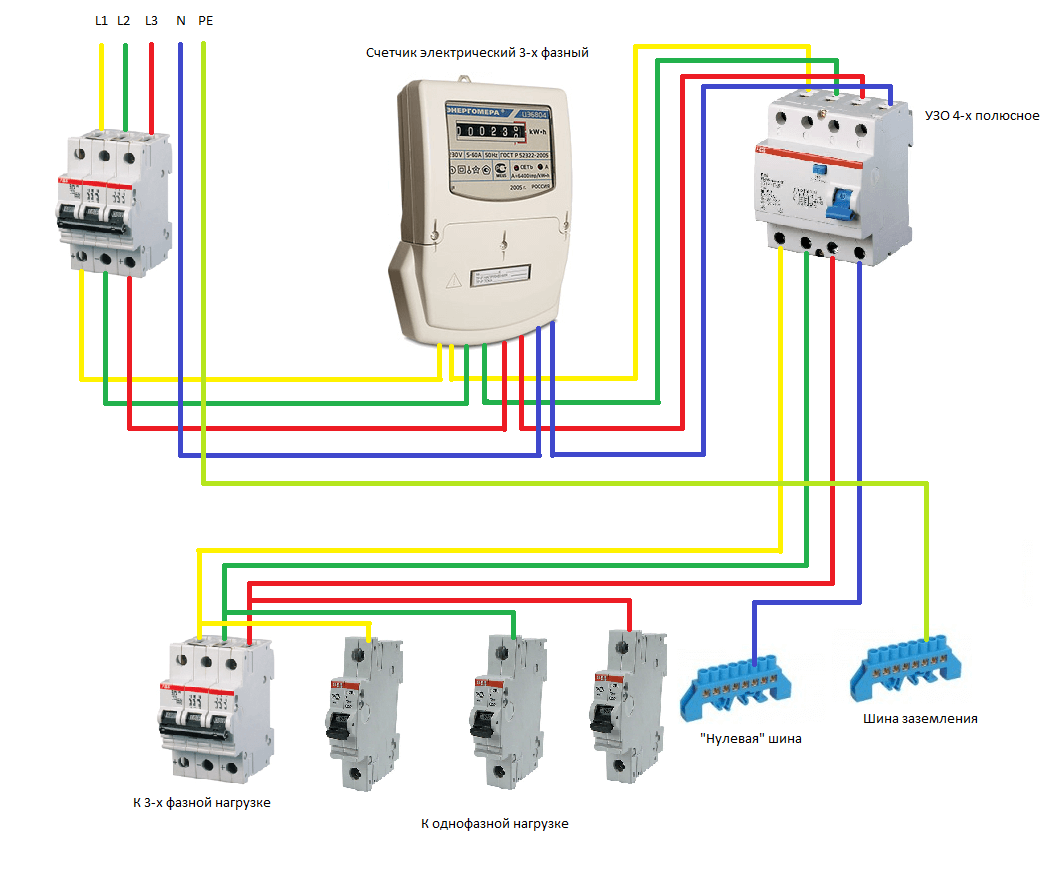 Вот мы и рассмотрели возможные схемы подключения трехфазного УЗО к сети. Как вы видите, подключить защитный аппарат можно различными способами, все зависит от условий применения.
