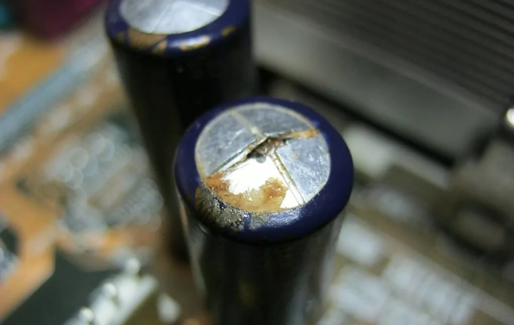 В импортных электролитических конденсаторах предусмотрены крестообразные оттиски в верхней части корпуса. В этих местах толщина стенок тоньше, при пробое энергия прорывает эти полосы, остается маленькое выжженное отверстие. Внимательно осматривайте и отбраковывайте такие элементы.