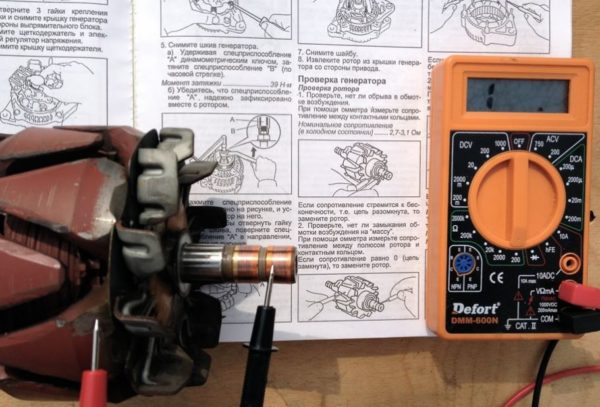 Если диодный мост в порядке, щетки на регуляторе напряжения не сточены, визуальных повреждений и загрязнений не обнаружено – смотрим ротор генератора.