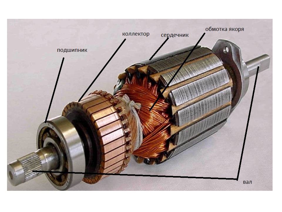 Сердечник устройство включает в себя несколько листов, выполненных из электротехнической стали, их толщина должна составлять 0.5 мм. Сердечник монтируется в вал, но если диаметр якоря очень большой, то в цилиндрическую втулку. Что касается коллектора, то в его состав входят медные пластины, число которых может отличаться в зависимости от конструкции. Коллектор собирается отдельно, после чего он впрессовывается в вал посредством изолирующей втулки.