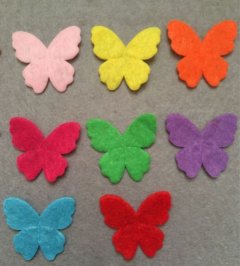 Картон используют не очень большой плотности. Это скорее очень плотная бумага. Он тоже есть цветной и двусторонний. С его помощью чаще делают объемный декор — загнуть крылышки относительно корпуса можно легко. Этот материал даже лучше держит форму. Только стоит помнить, что гофрированные крылышки уже не сделаешь — слишком жесткий материал для того, чтобы можно было сделать мелкую складку.