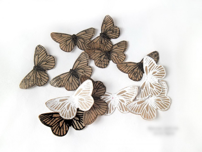 Бабочки для декора из бумаги сделать проще и дешевое всего. Есть несколько различных техник. Если изделие будет плоским и его на стену/панно наклеивают целиком, важна только лицевая поверхность. Если предполагается объемная композиция, бумага должна быть двусторонней — обе стороны должны быть окрашенными, ведь белая часто «изнанка» портит впечатление.