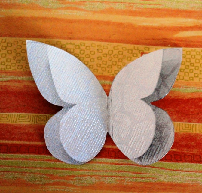 Из выбранного материала вырезаем несколько заготовок бабочек с разным размером (можно с различным контуром). Склеиваем их по центру и занимаемся поднятием крыльев.