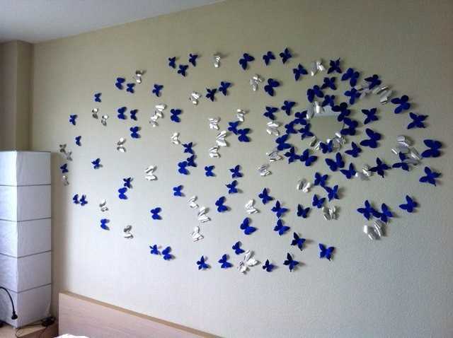 Если же у вас стены с рисунком, то такой вариант вам вряд ли подойдет, поскольку на этом фоне такие бабочки потеряются. А можно купить бабочек, изготовленных из самоклеющейся пленки, и наклеить там, где вам захочется.