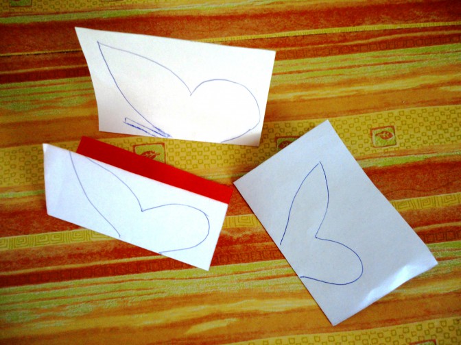 6. Складываем прямоугольники пополам и обводим шаблоны.