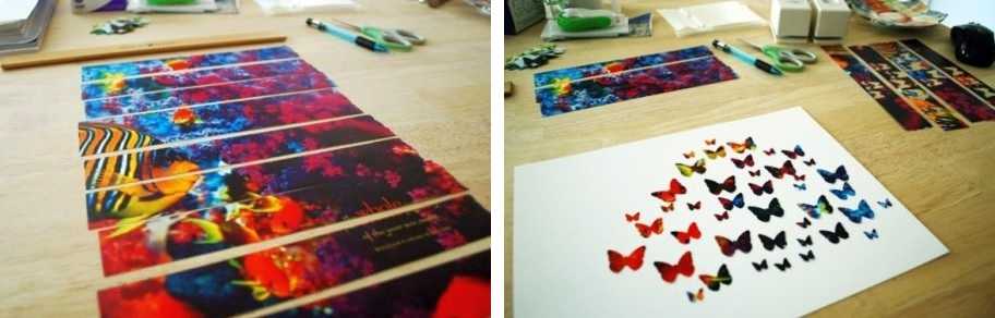 Еще картон используют для изготовления шаблонов «массового» производства одинаковых бабочек. С помощью таких трафаретов можно делать одинаковых по виду и размеру насекомых и тратить на это минимум времени.