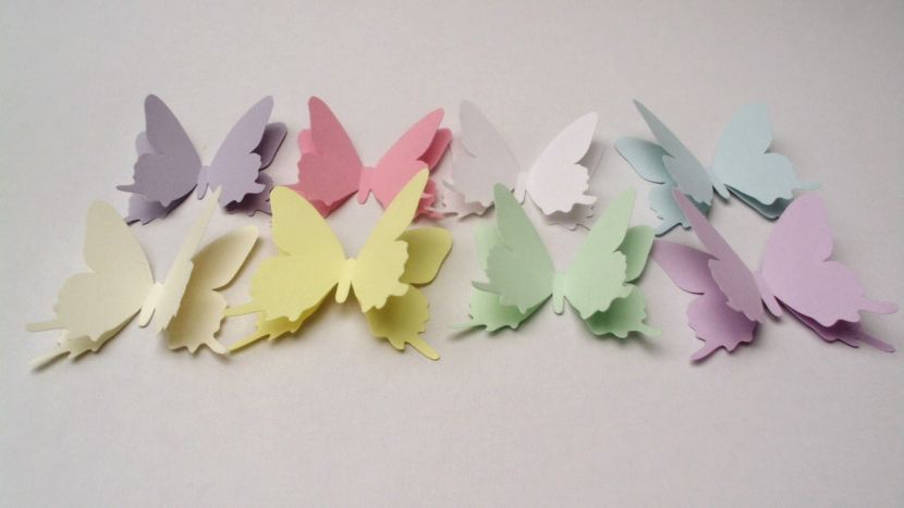 Создавая бумажных бабочек, вы можете сделать их плоскими или объемными, гладкими или с текстурой, а также многослойными и даже ажурными. А то и вовсе совместить все в одном. Главное — подойти к этому вопросу не только творчески, но еще и с умом. Ведь ваша композиция должна максимально улучшить помещение. Вдохнуть в него жизнь и динамику, а не становиться показателем безвкусицы.