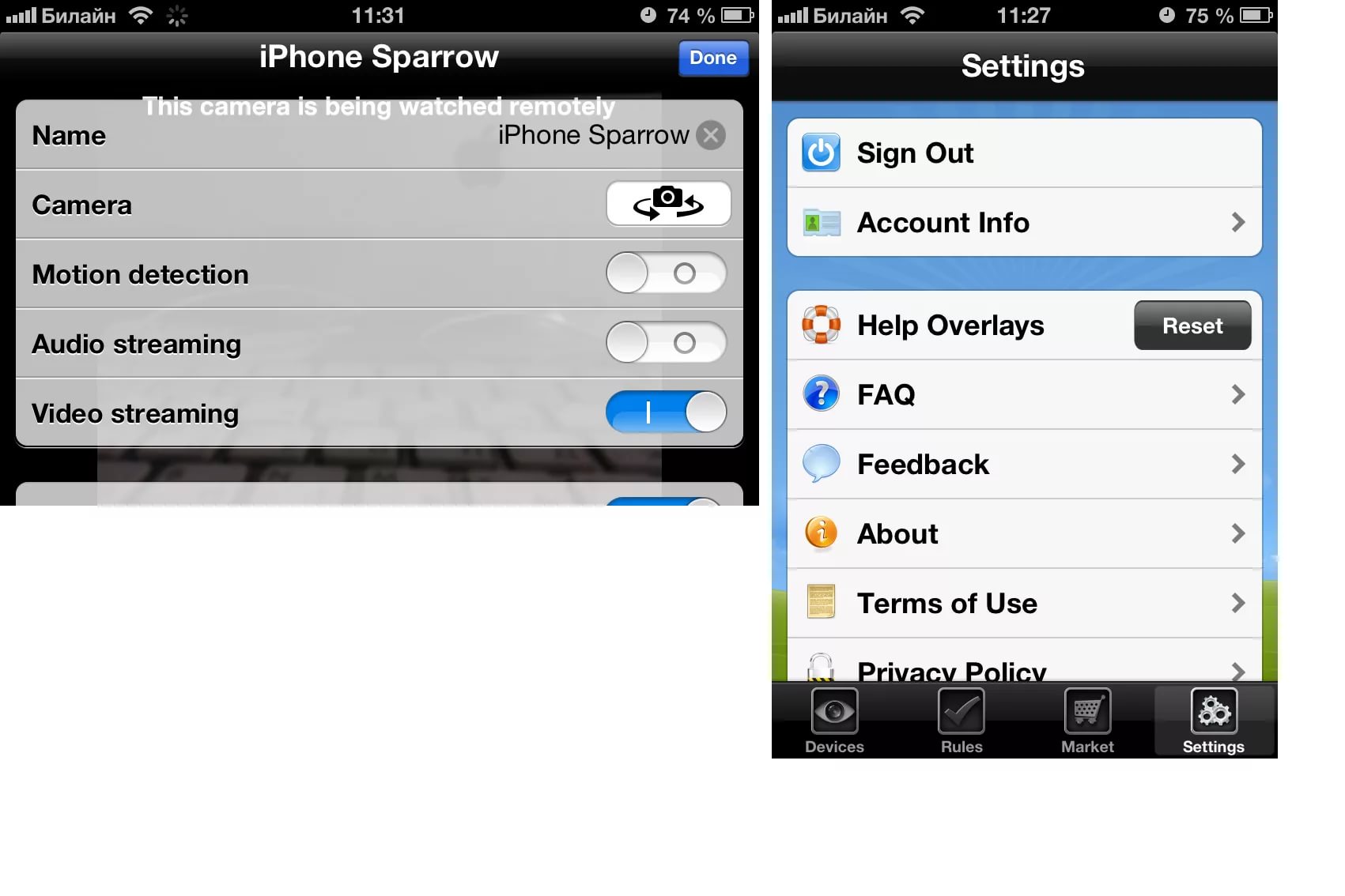 Если вы желаете смотреть, программа отобразит для вас список всех гаджетов, работающих в режиме камеры и подключенных к этому аккаунту. Поскольку при передаче информации по мобильным сетям проблему может составлять чрезмерно большой трафик, не предусмотренный тарифным планом, в настройках программы можно задать ограничения для этого параметра, чтобы снизить качество съемки.