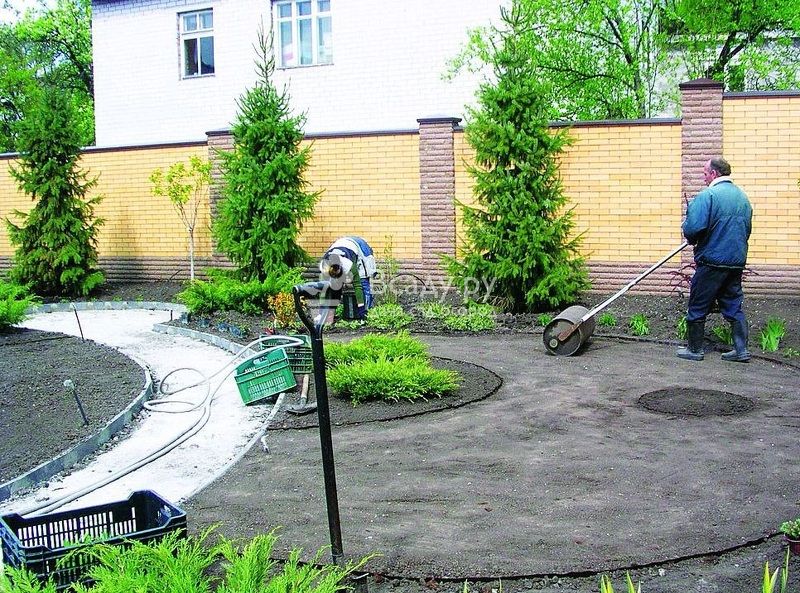Справка: территория, отведенная под газон, должна быть выровнена и очищена от деревьев и кустарников. Этапы: