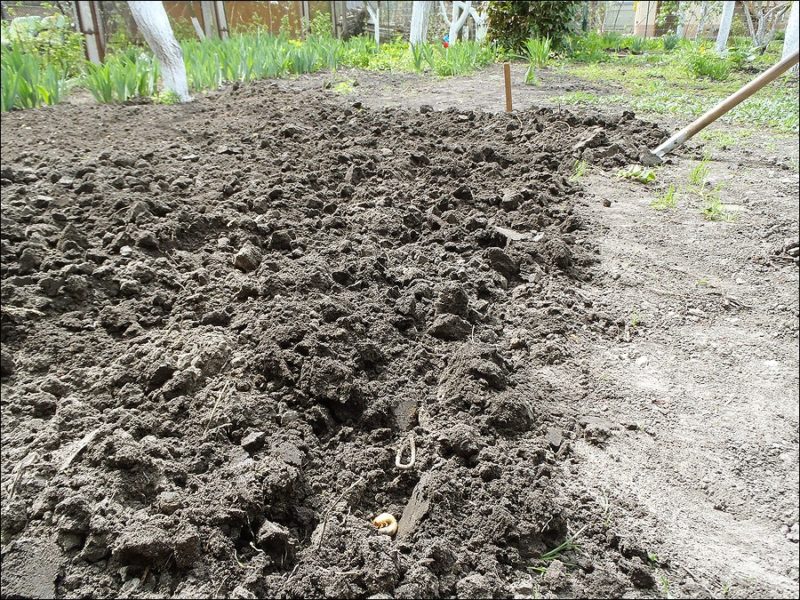 Глубина перекопанного грунта должна составлять примерно 20-25 см, а при наличии небольшого плодородного слоя следует уделить внимание подсыпке питательной почвы
