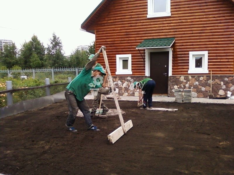 - Грунт проходит финальное разрыхление при помощи грабель.
