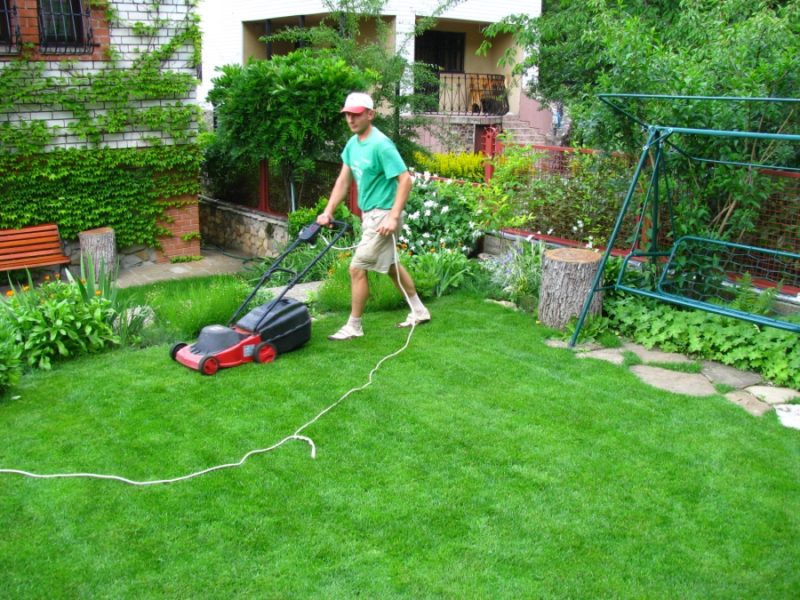 Впервые подстригают газон, когда трава вырастет до 8-10 см, оставляя при этом не меньше 5 см, так вы обеспечите равномерный рост по всему периметру. Далее скашивайте траву раз в 7-10 дней.