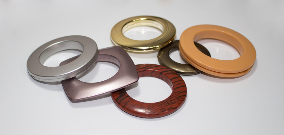 В настоящее время кольца могут быть выполнены из разных видов материала: дерево, пластик и металл. Так как чаще всего для штор на люверсах выбирают плотную и достаточно тяжелую ткань, то лучше всего выбирать металлические кольца. Они больше прослужат и создадут красивую драпировку, не прогибаясь под тяжестью штор.