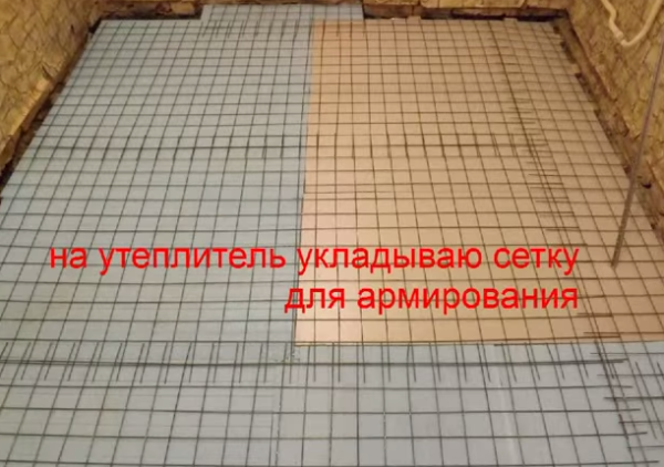 Шаг 1. Поверх пароизоляционной пленки укладывается армирующая сетка.